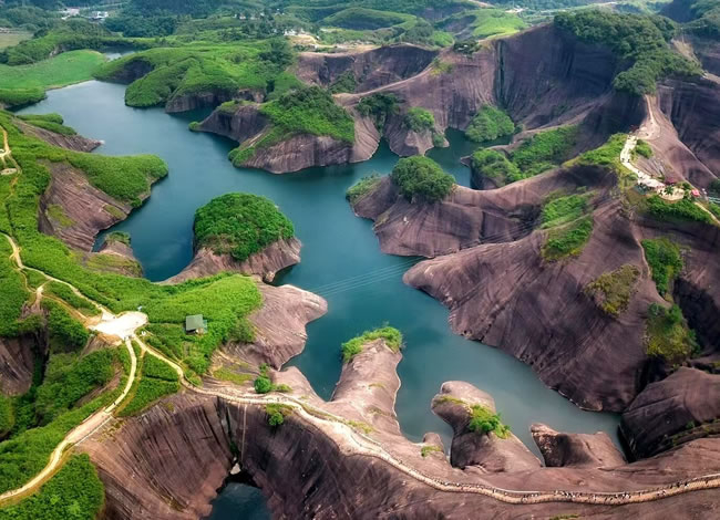 抵達(dá)后,前往郴州抖音最火網(wǎng)紅打卡地【高椅嶺】(游覽時(shí)間約3.5小時(shí))。車覽【馬皇丘大峽谷】,峽谷原為一條小路穿行而過,現(xiàn)為一條漂亮的馬路,卻造就了另一種景觀,其中絕壁上的酷似女性私處【陰元石】更是丹霞景觀一絕。而后徒步高椅嶺,欣賞絕美之丹霞碧水,【巨蜥臥水】。先是歷經(jīng)【瓜石頸】之天梯險(xiǎn)境,再是近距離感受【羊牯石】景區(qū)之絕美。從高處往下鳥瞰瓜石頸,一條清澈美麗的“天河”蜿蜒穿行在丹霞地貌之間,或?qū)捇蛘?,蔚為大觀,從羊牯石景區(qū)原路返回至瓜石頸,沿另一條石級(jí)自上而下欣賞水中“巨蜥”形神兼?zhèn)渲^美,驚于大自然的造化與鬼斧神工。這一片丹霞碧水,因?yàn)榈は嫉孛仓苓呌衅恋乃蔹c(diǎn)綴,美得一塌糊涂。